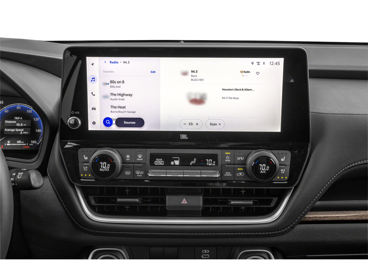 - Radio: 12.3" Toyota Audio Multimedia w/JBL Premium -inc: touchscreen, subwoofer and amplifier, wireless Apple CarPlay and Android Auto compatibility, SiriusXM w/3-month trial subscription (see toyota.com/audio-multimedia for details) and 11 speakers